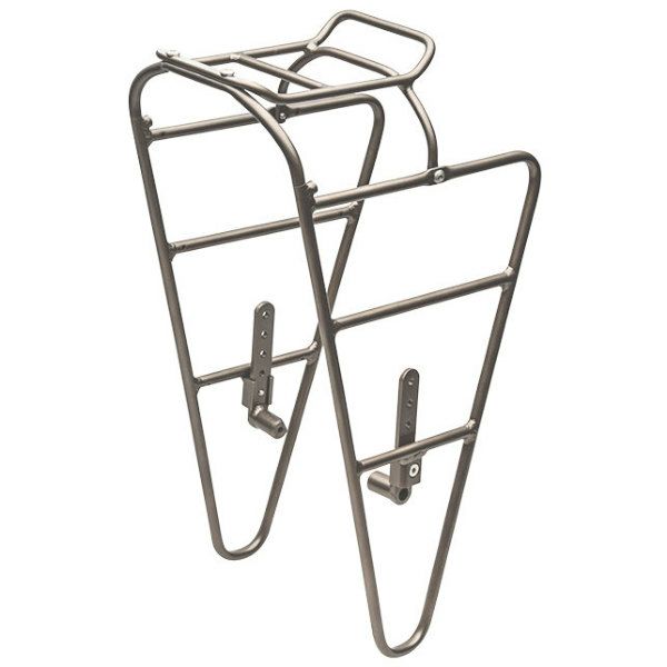 フロントサスペンションにも対応する軽くてタフなフロントラック。上部ラックは使用方法に応じて取り外して軽量化可能。