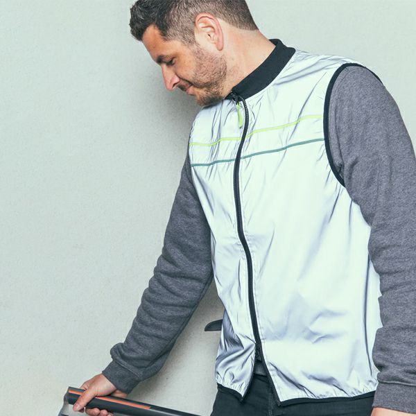 蛍光イエローディテールが施された完全反射のセーフティベストです。背面は通気性のあるメッシュ生地で作られており、目的地に到着する際に汗をかかないように設計されています。 快適さを追求し、長めのバック、両方向ジッパー、柔らかい襟を採用しています。 両サイドの裾には2つのポケットがあります。