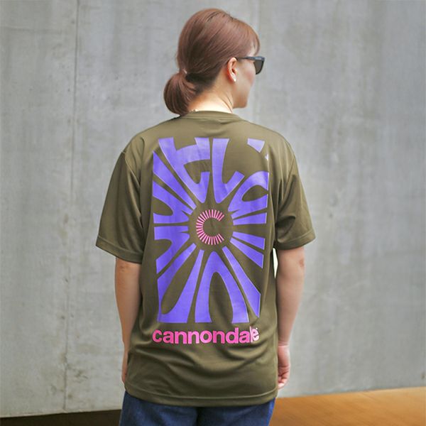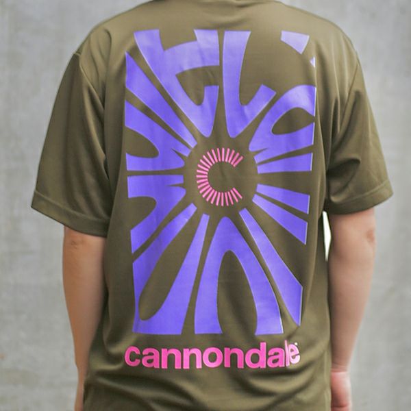 ◆Radial Olive:キャノンデールロゴをサイケデリックにアレンジ。パープルやピンクのプリントカラーと相まってレトロなムードのT。