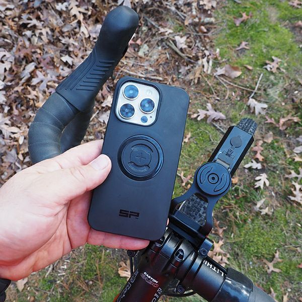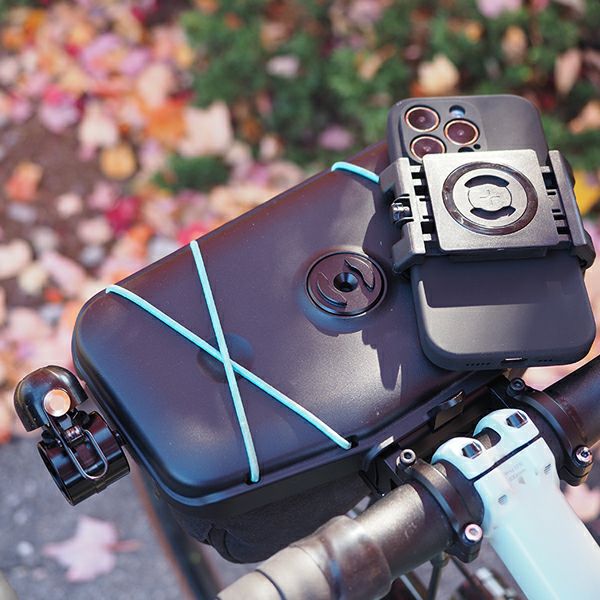 ハンドルバーバッグのトップリッドやアウトフロントマウントにSP CONNECT社のスマートフォンケースを取り付け可能にするマウント。