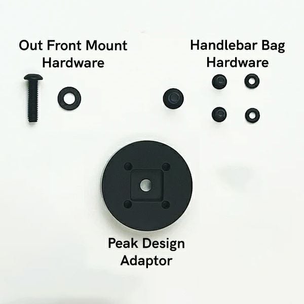※取り付け画像はイメージです。ハンドルバーバッグ、ピークデザインアウトフロントバイクマウント、フォンケース、スマートフォンは付属しておりません。