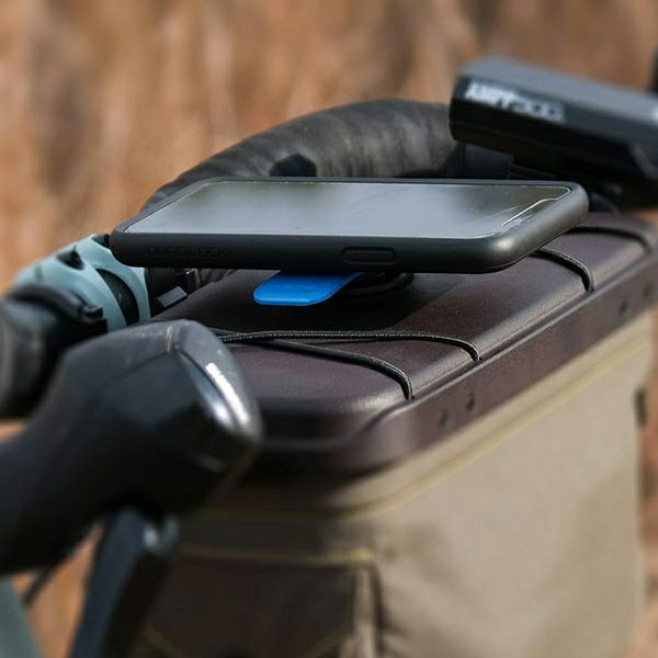 ハンドルバーバッグのトップリッドやアウトフロントマウントにQuad Lock社のスマートフォンケースを取り付け可能にするマウント。